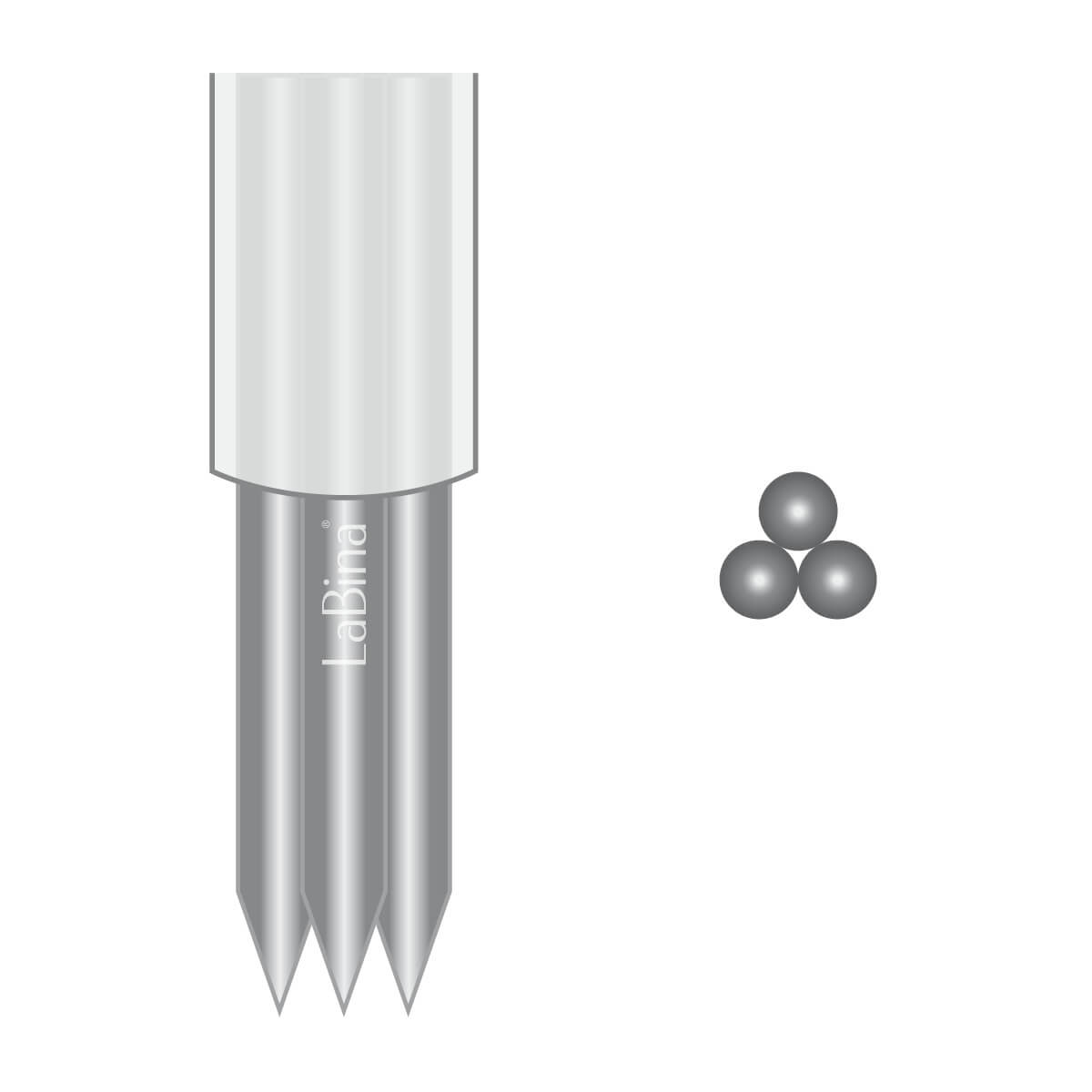 De naalden voor de 3-delige Outline-hygiënemodule zijn slechts 0,25 mm dun, hebben in vergelijking met normale 3-delige ronde naalden een fijnere slijping en staan dichter op elkaar.